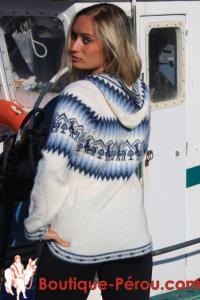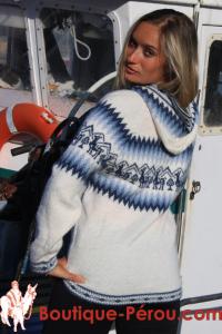 Ref.: MA-PLL-BCLa couleur de la laine d'alpaga est d'un blanc impecable un modele cintré avec des franges.