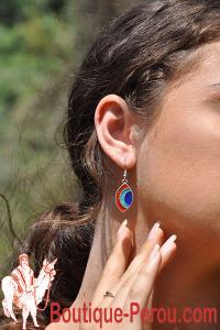 Boucles d'oreilles péruviennes en pierres semi precieuses et alpaca.