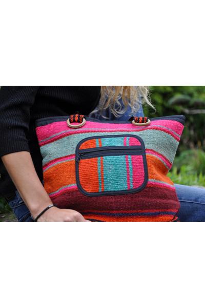 Sac à main tissé en épaisse laine de mouton, il est très résistant et original.