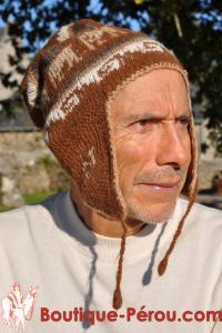 Ref.: BNNT-PRVN-MRRNAuthentique bonnet péruvien en alpaga avec des caches oreilles.