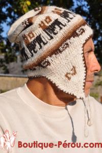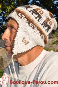 Ref.: BNNT-PRVN-BLNC-KSSEAuthentique bonnet péruvien en alpaga avec des caches oreilles.