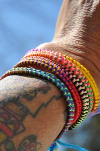 Lot de cinq bracelets péruvien fins, couleurs de l'arc en ciel