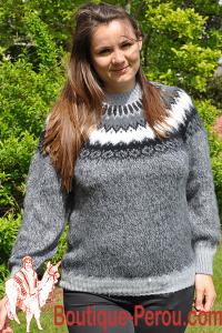 Ce pull a été tricoté à la main en laine vierge d'alpaga.
