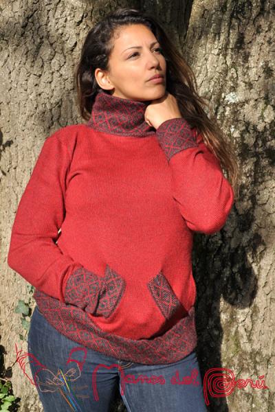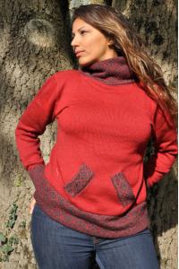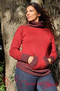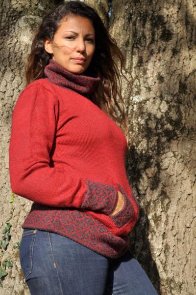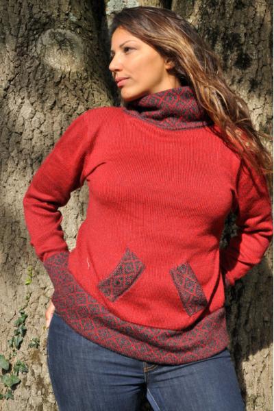 Beau tricot rouge indien coupe cintré en laine d'alpaga.