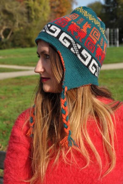 Bonnet peruvien Pachamama en laine d'alpaga