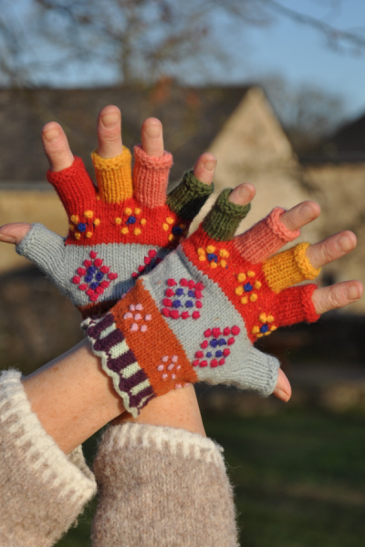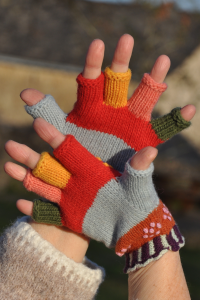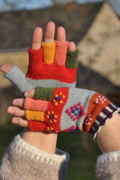 Ces très jolis gants-mitaines sont tricotés à la main avec une laine mérinos.