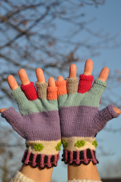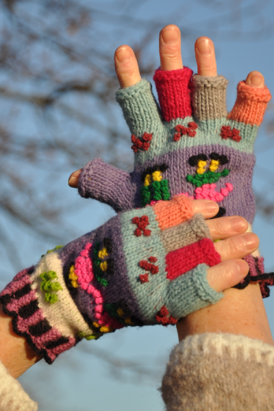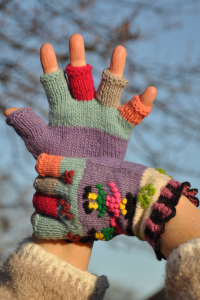 Chaque paire de gant est unique car elle sont tricotées à la main.