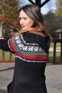 Gilet avec capuche en laine d'alpaga et fermeture éclair.