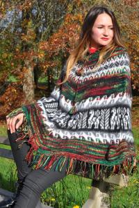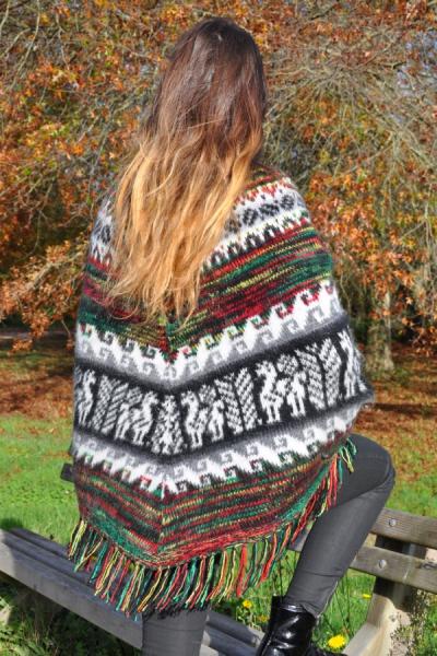 Ponchito péruvien aux couleurs chaudes et vibrantes de l’arc-en-ciel, parfait pour illuminer vos tenues d’automne-hiver.