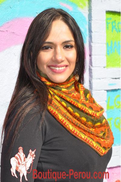 Réf.: ECHRP-TRCT-BLNCBelle écharpe tube terminée en pointe à l'avant. Ce modèle est une création artisanale péruvienne.
