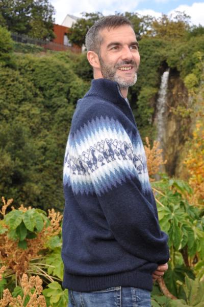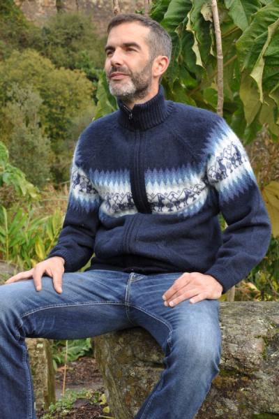 Magnifique cardigan avec motifs typiques des Andes, lamas et montagnes, couleur sobre, cette veste est épaisse chaude, douce et soyeuse.