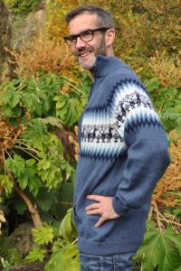 Tricot en laine d'alpaga avec con col montant couleur bleu indigo