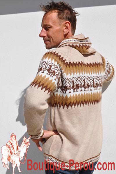 Magnifique veste avec motifs typiques des Andes, lamas et montagnes, couleur sobre, cette veste est épaisse chaude, douce et soyeuse.