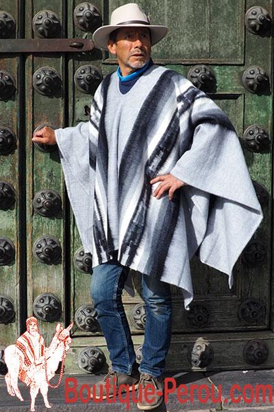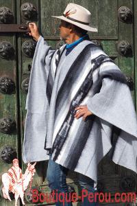 Poncho péruvien tissé à la main en laine vierge d'alpaga. C'est une pièce unique. Couleurs naturelles.