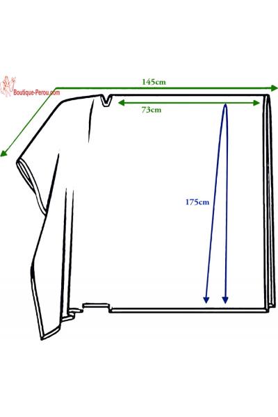Ce poncho se caractérise pour être filé et tissé à la main par des artisans de Hualhuas dans la cordillère central du Pérou.