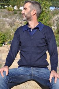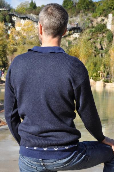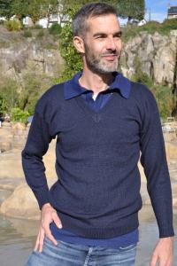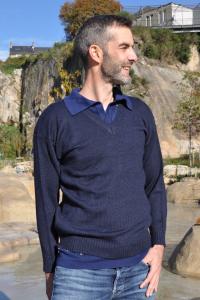 Pull homme bleu marine en laine bébé alpaga