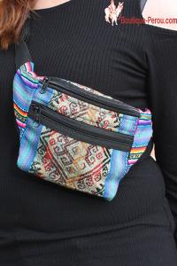 Sac bandoulière péruvien pratique pour transporter vos petites affaires, il s'attache à la taille et vous pouvez aussi le porter en bandoulière.