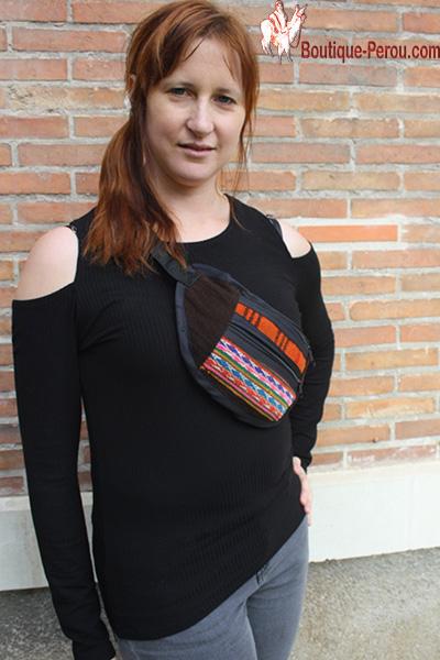 Sac banane en tissage péruvien aguayo, pochette kangourou.
