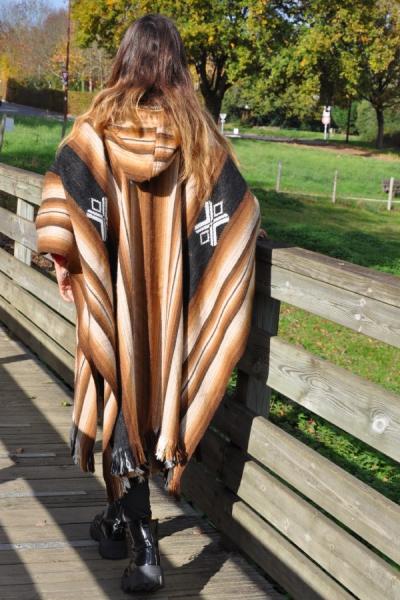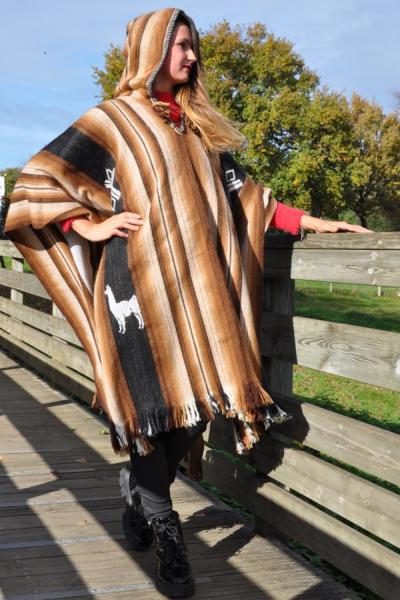 Poncho péruvien en laine d'alpaga avec sa capuche
